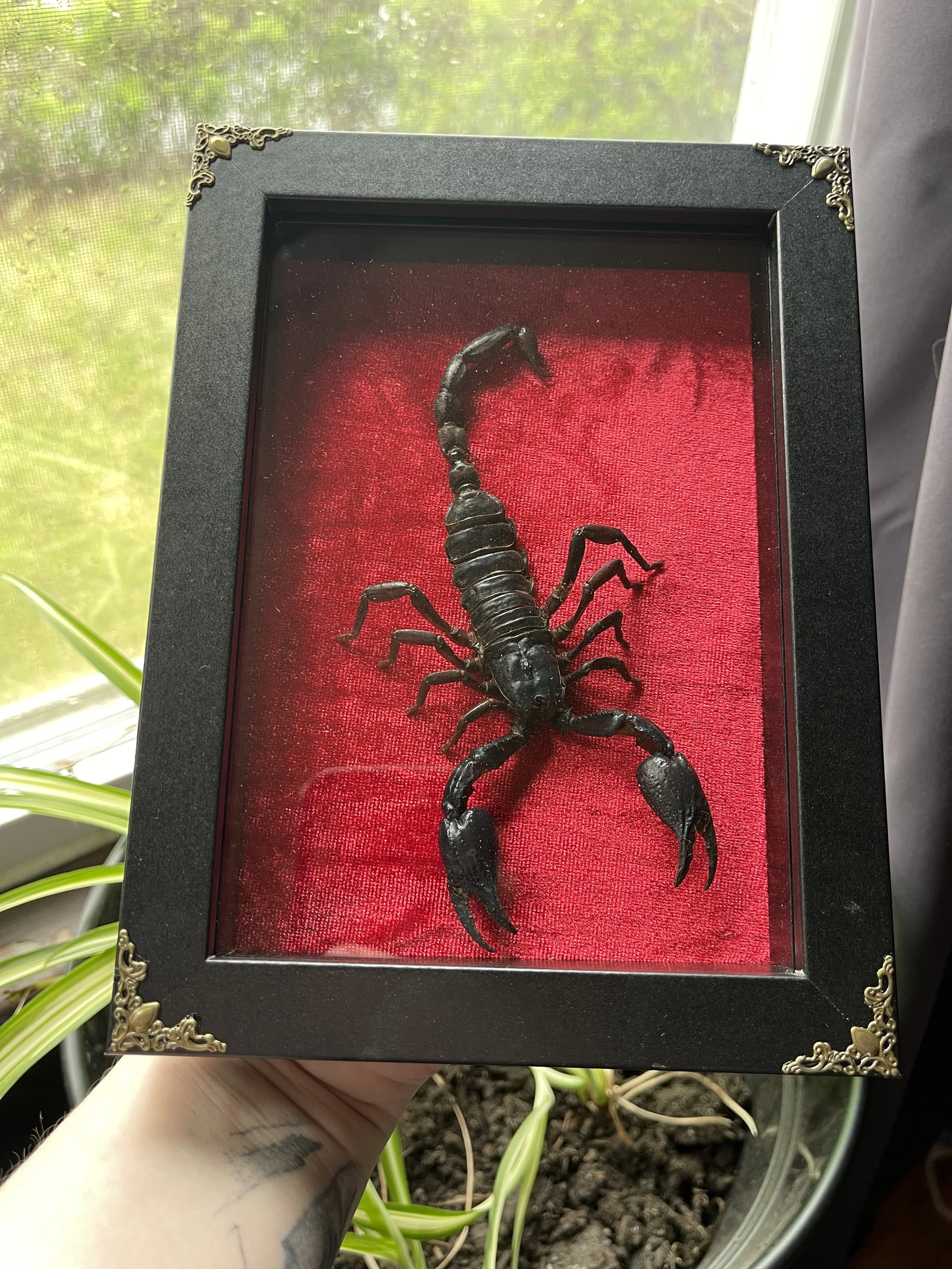 Shop › Giant Forest Scorpion Image 1 of 1 Giant Forest Scorpion $60.00 A giant forest scorpion in a 5x7 shadow box frame Add To Cart Added! A giant forest scorpion in a 5x7 shadow box frame
